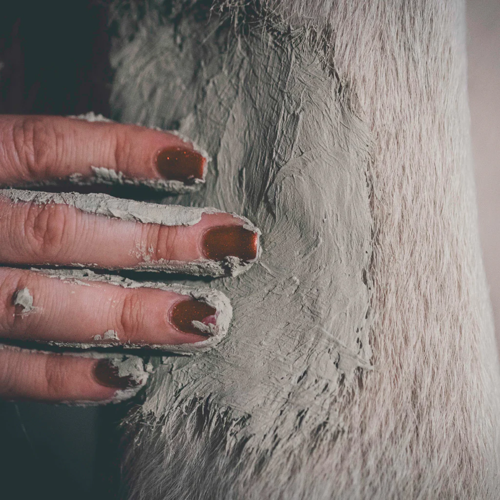 🌿 Argile Réparatrice Cura Naturale : cataplasme apaisant pour chevaux et chiens. 💧 Soutient la récupération cutanée, assainit et protège les zones fragilisées exposées à l’humidité ou aux frottements.