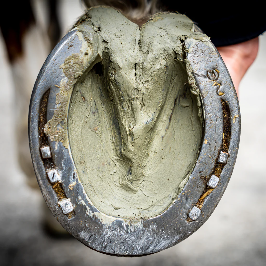 Cataplasme ciblé pour les chevaux aux sabots sensibles, que ce soit après un effort, un changement de ferrure ou pendant la transition vers le pied nu.