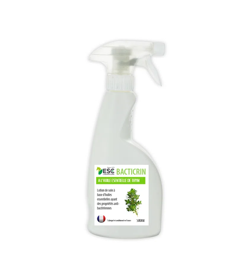 Bacticrin est une lotion de soin enrichie en huiles essentielles ayant des propriétés purifiantes. Bacticrin contribue à apaiser les problèmes de peaux du cheval et irritations cutanées.
