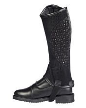 Chaps Lara HKM enfant avec garniture élastique, mesh respirant, grip silicone, fermeture éclair arrière et bouton-pression de sûreté pour confort et adhérence.