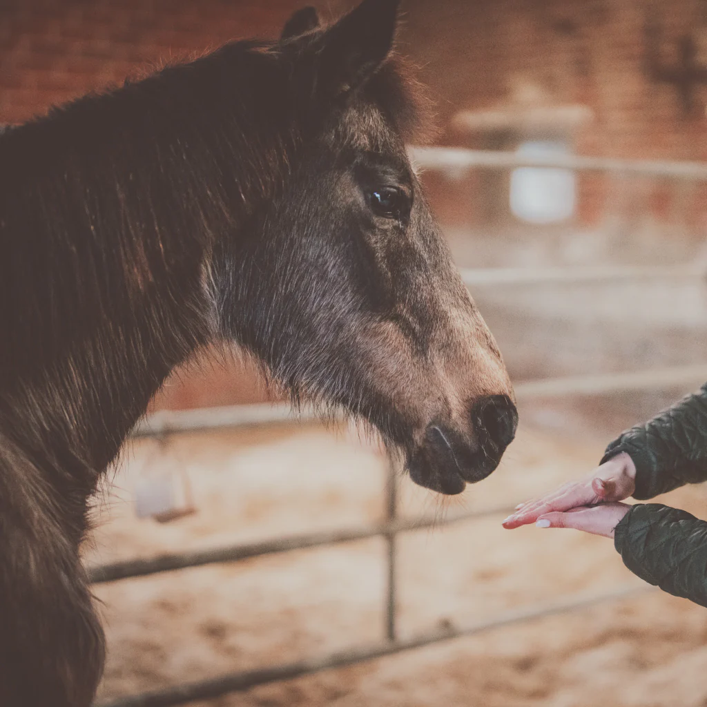 2️⃣ Laisser le cheval respirer naturellement les arômes.
