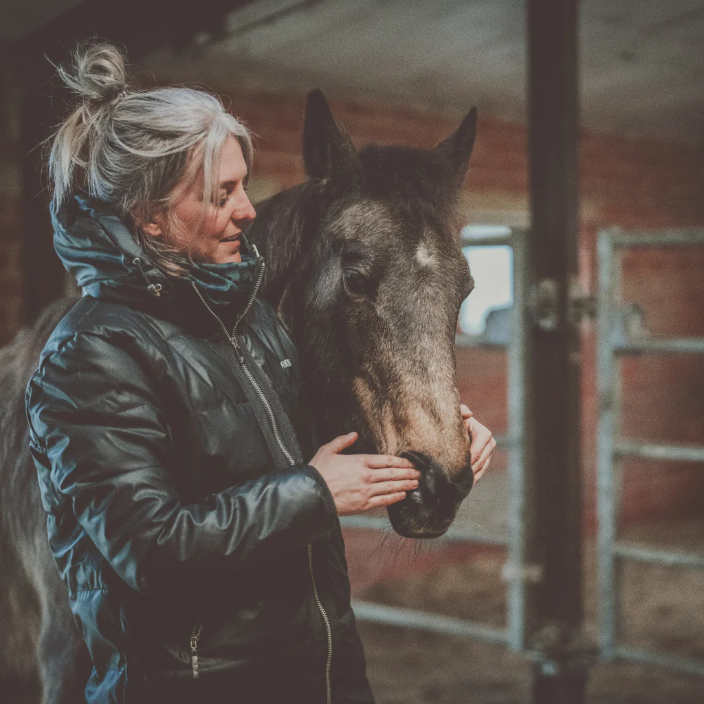 3️⃣ Masser doucement l’entrée des naseaux ou les zones proches (ganache, gorge, poitrail) pour diffuser les actifs.
