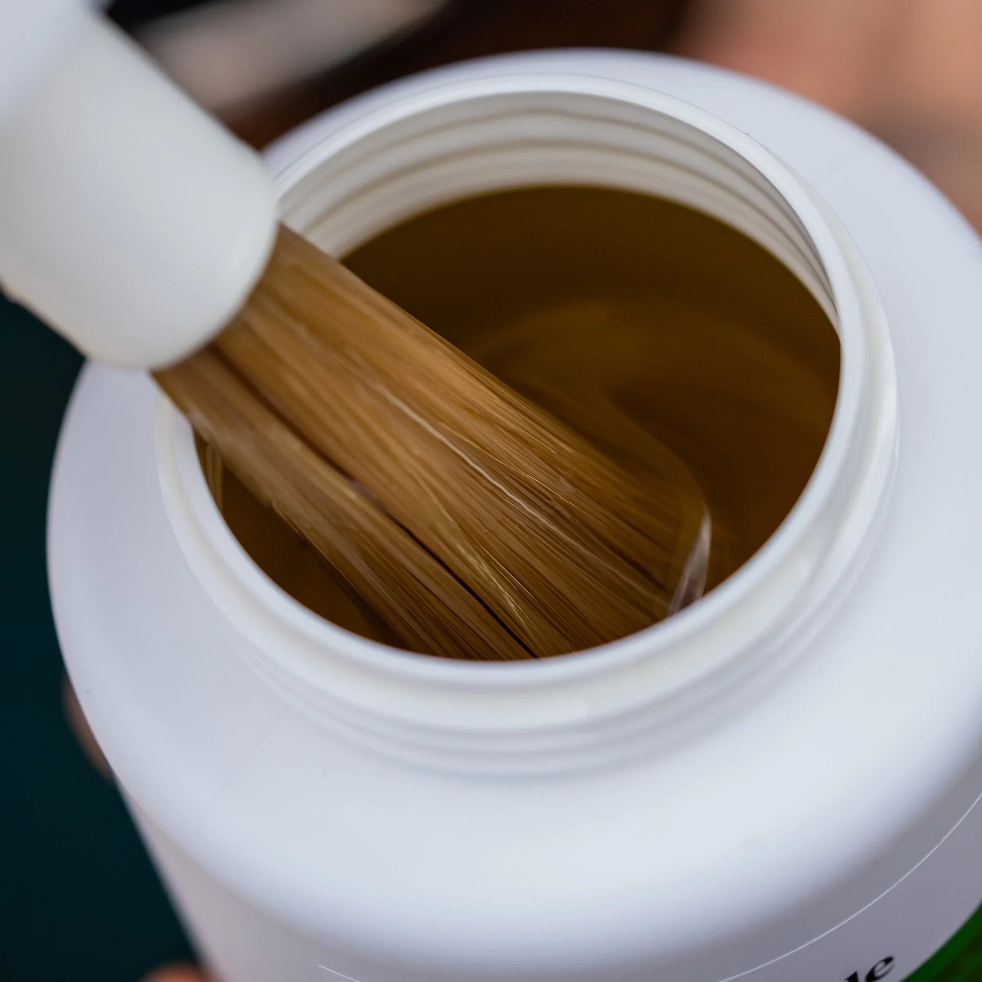 2. Appliquez l’huile à l’aide du pinceau intégré, en couche fine et homogène sur l’ensemble du sabot.