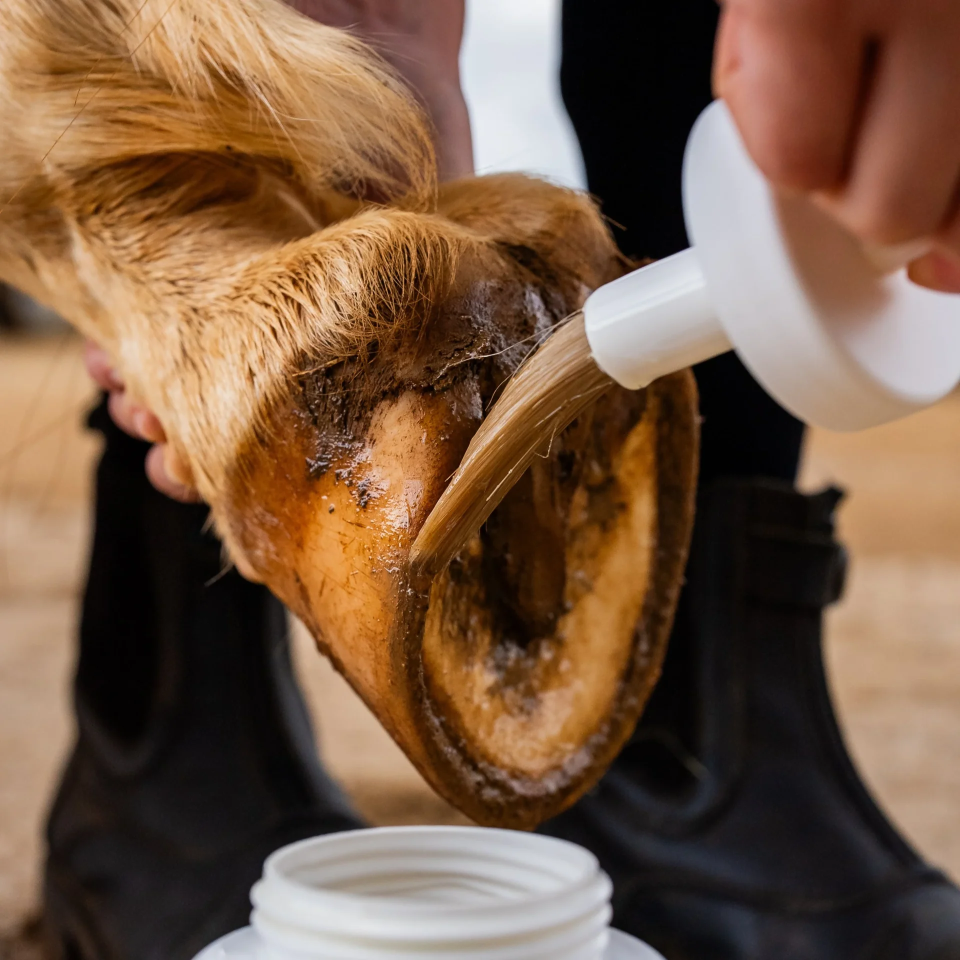 Réputée pour ses propriétés fortifiantes et régénérantes, elle aide à maintenir une corne saine et élastique. Elle protège les zones sensibles et favorise la qualité de repousse, notamment lors des changements de ferrure ou de parage.