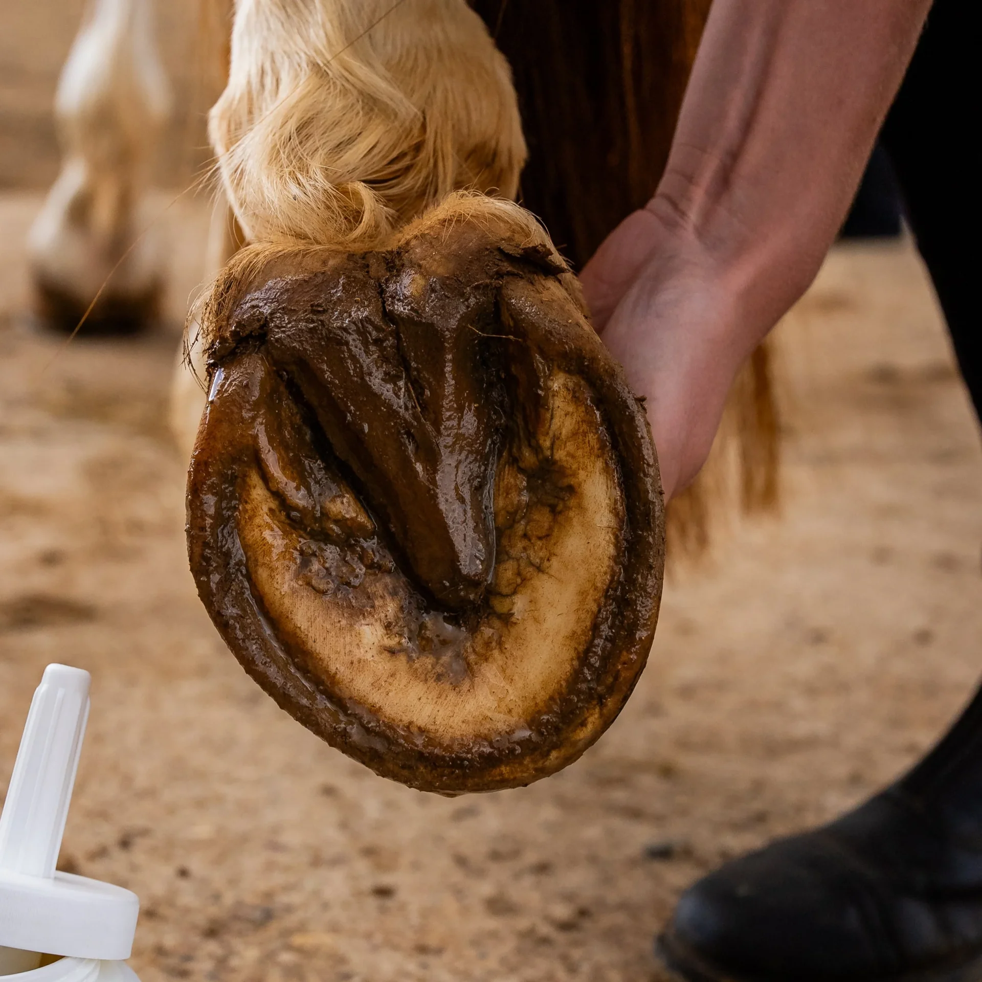 En cas de corne ramollie ou de pied humide, il est recommandé d’appliquer au préalable l’Argile assainissante sabots, qui aide à assécher et purifier la zone avant l’utilisation de l’huile.
