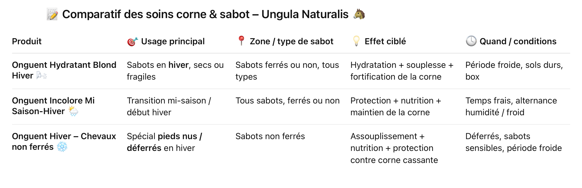 L’Onguent Hydratant Blond Hiver 🧴 Ungula Naturalis est conçu pour accompagner les sabots en période froide, lorsque la corne a tendance à se dessécher et perdre en élasticité ❄️.