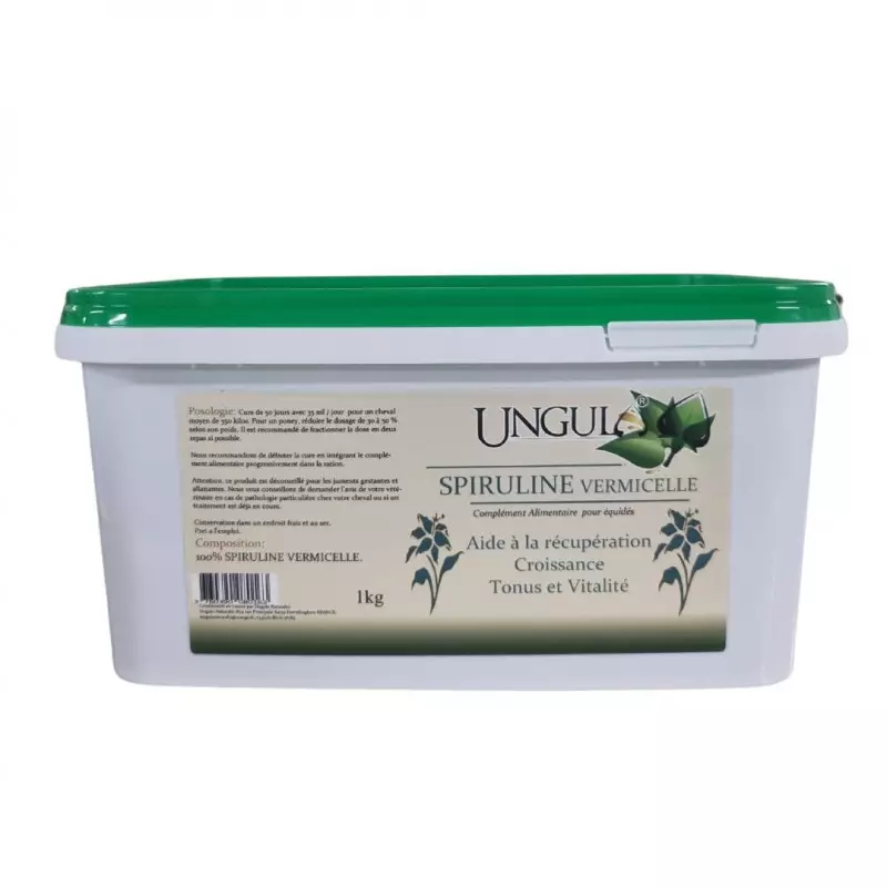 La spiruline Ungula Naturalis, sous forme de vermicelles, est un complément naturel qui aide à combler les carences alimentaires et à soutenir la prise de masse musculaire chez le cheval 🐴💪.
